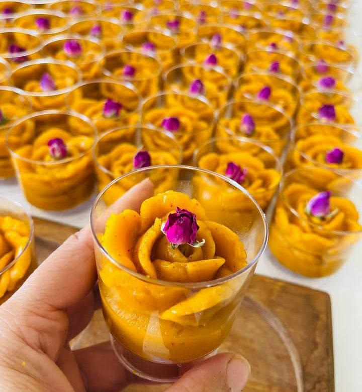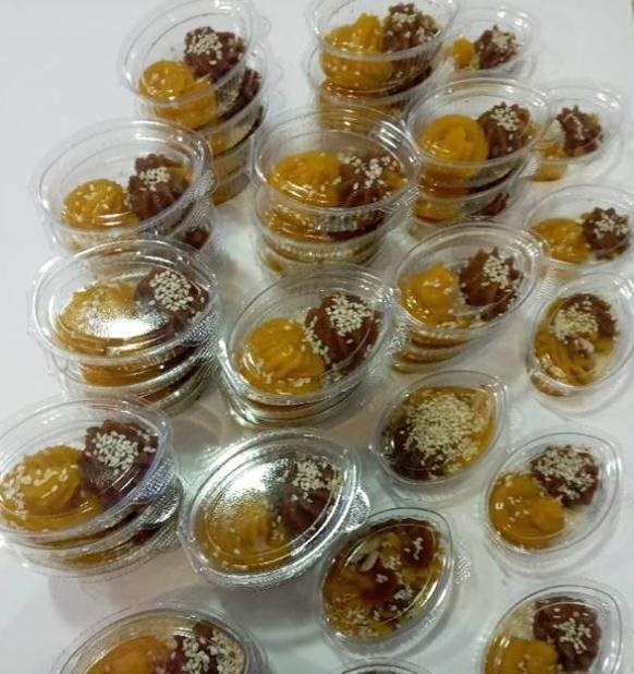 سینی حلوا شماره ۳ حلوا زعفرانی تارتی در دیس چوبی تعداد ۶۰ عدد